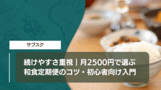 サブスク 続けやすさ重視|月2500円で選ぶ和食定期便のコツ・初心者向け入門 月2500円で始める和食定期便の選び方を初心者向けに解説。スキップ・一時休止ができる柔軟なプランなら無理なく継続可能。人気サービス例や続けやすさのコツも紹介し、無駄なく美味しく続けるコツを解説します。 2025.10.09 サブスク