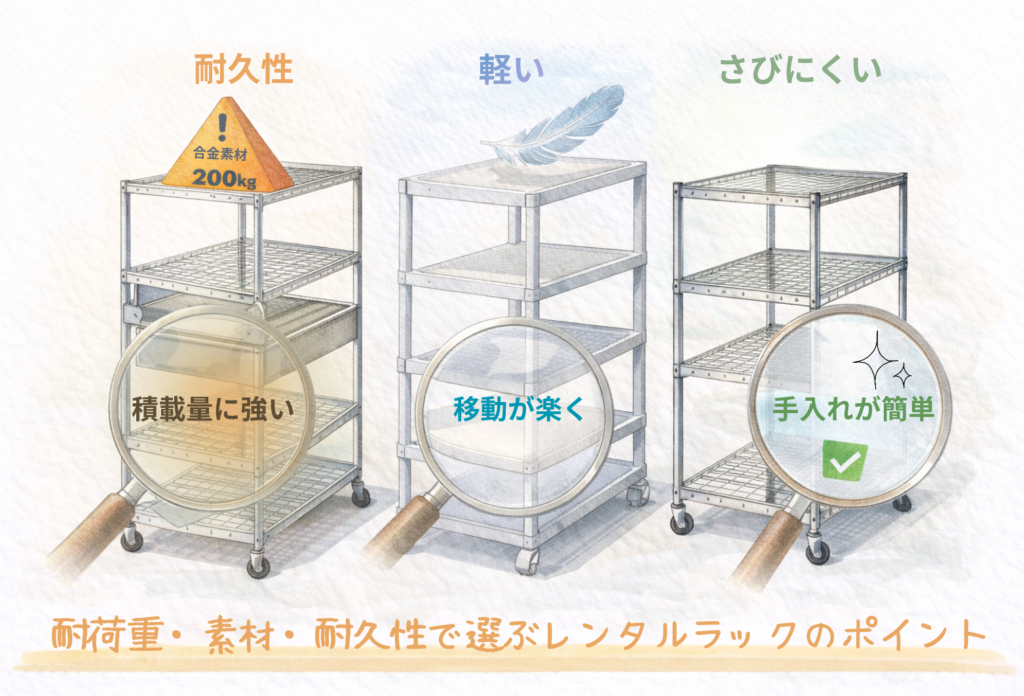 耐荷重・素材・耐久性で選ぶレンタルラックのポイント