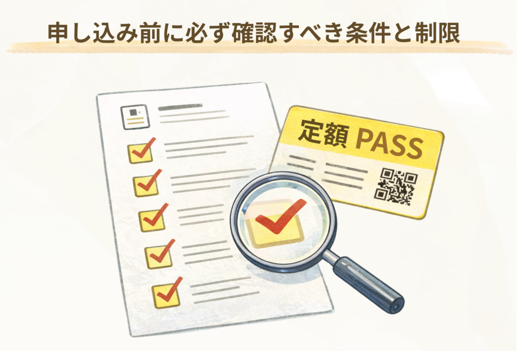 次に、定額パスの対象路線や利用可能時間帯を確認し、自分の移動パターンに照らし合わせることで、加入後に「思ったより使えない」「料金が割高」といった問題を避けられます。