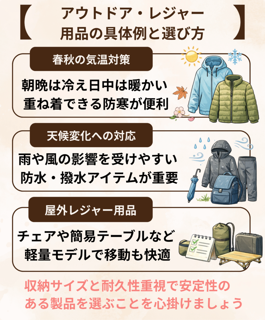 春・秋の旅行で需要が高いアウトドア・レジャー用品の具体例と選び方