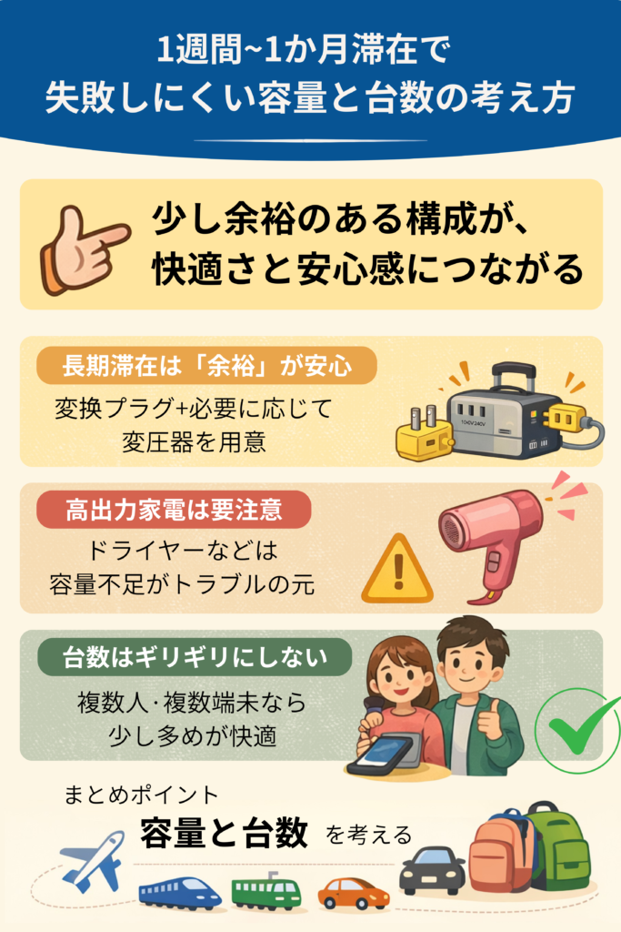 1週間〜1か月滞在で失敗しにくい容量と台数の考え方