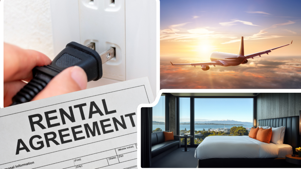 最近の電子機器は100V〜240Vに対応している製品が増えており、短期利用では特にその恩恵を受けやすいです。ただし、ホテルの客室によってはコンセントの数が少なかったり、ベッド周辺に電源がなかったりすることもあります。