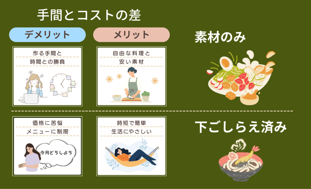 - 下ごしらえ済みvs素材だけタイプ:手間とコストの差
