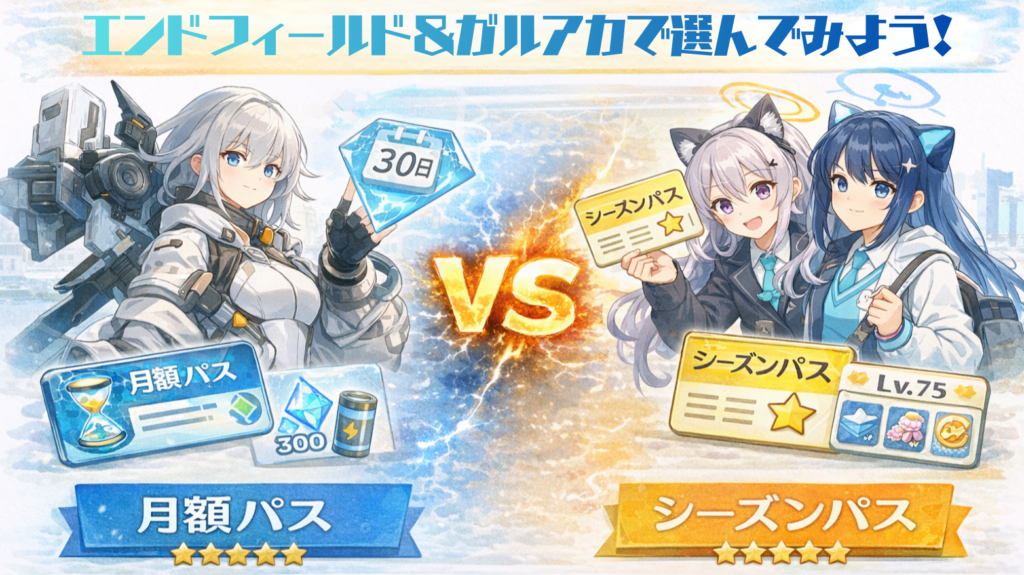 エンドフィールド&ブルアカで選ぶ:月額パス&シーズンパス併用法とメリット比較