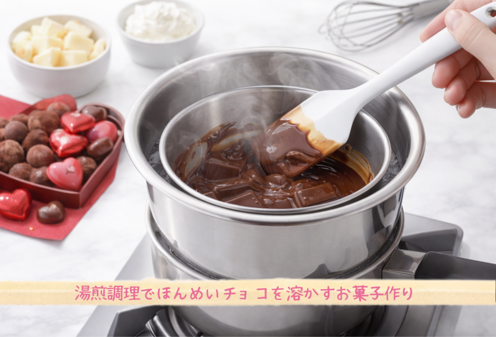 お菓子作り、特に本命チョコレートを用意する場面では湯煎調理が欠かせない工程が多く存在します。