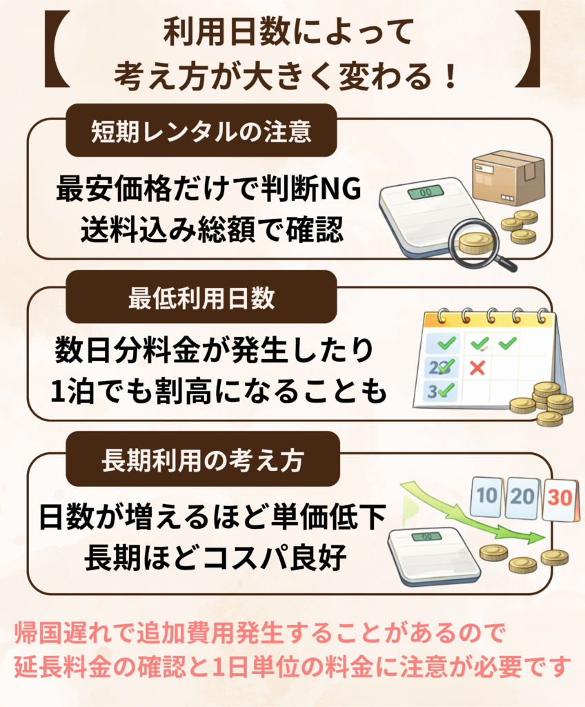1泊・短期・長期で変わる体重計レンタル料金の考え方